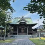 今現在の社殿は昭和12年に東区臨港1-8-48に遷宮建立され、青葉公園の大鳥居も同時期に建立されました。昭和40年代には神楽殿・社務所を新築し、昭和58年には社殿老朽化のため大規模改修工事(拝殿・回廊・屋根銅板葺き替え・参道整備等)を行っております。